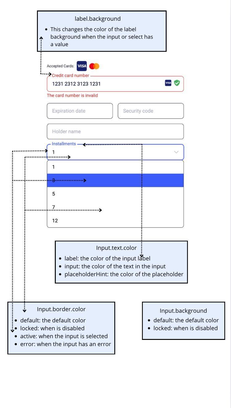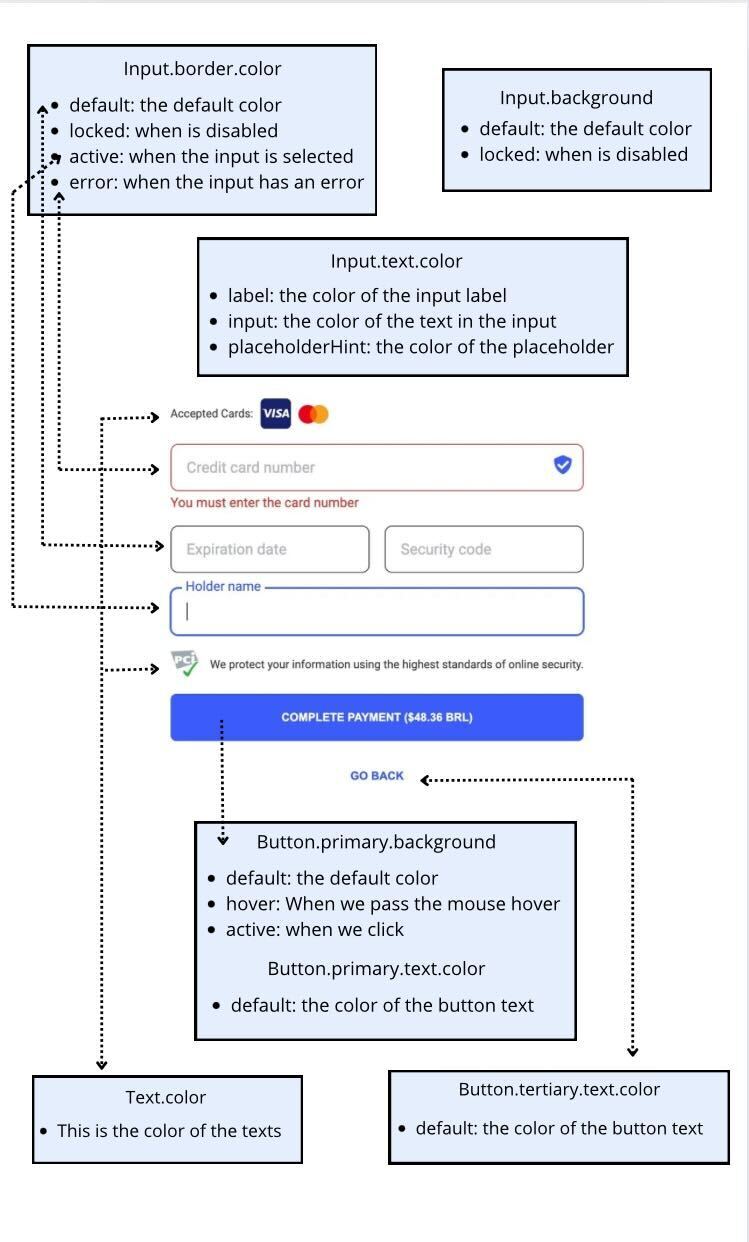 In the images below you will find the visual references of the colorSchema parameters and color customization possibilities.
