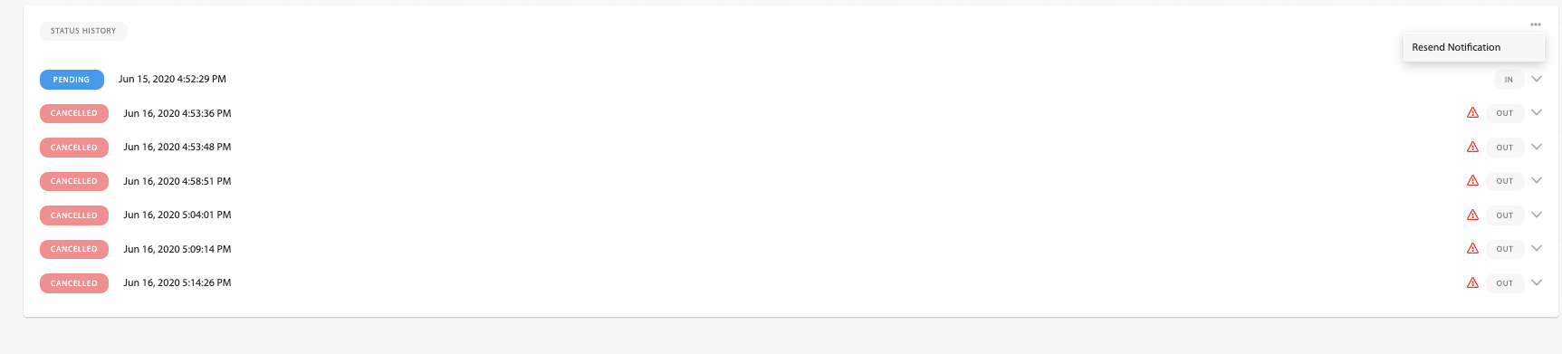 When a notification failed to be sent, it will be shown like this in our Merchant Panel: