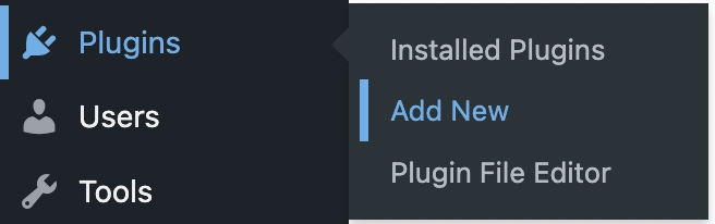 In the left-hand menu, select: Plugins > Add New.